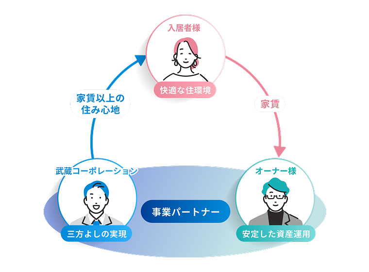 いつまでも住みたくなるような快適な住環境を提供する。入居者様が満足してくれることで、はじめて安定した入居率がのぞめます。結果、それが高い入居率の維持につながっていきます。