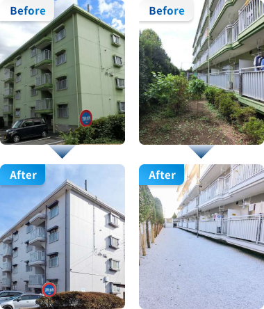 建物を長期的に活用するために必要な外壁工事、屋上やベランダ防水、各種設備の交換をご提案いたします。ご自宅など実需用不動産の工事・リフォームについてもご相談いただけます。