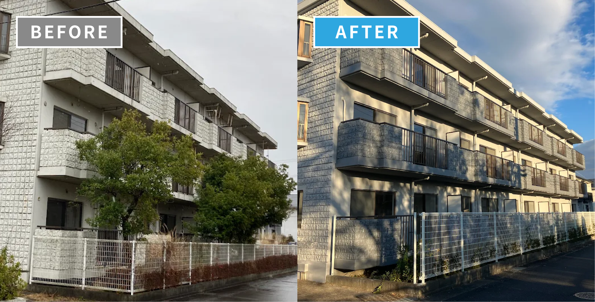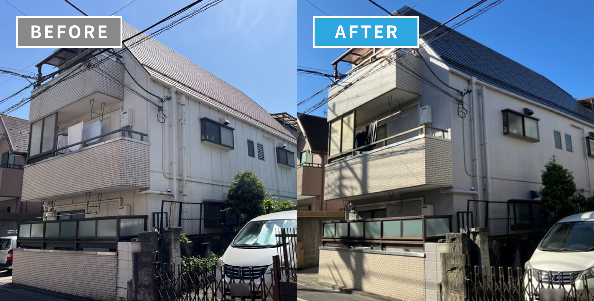 実際に、弊社で施工したアパートの外壁塗装事例を見てみましょう。